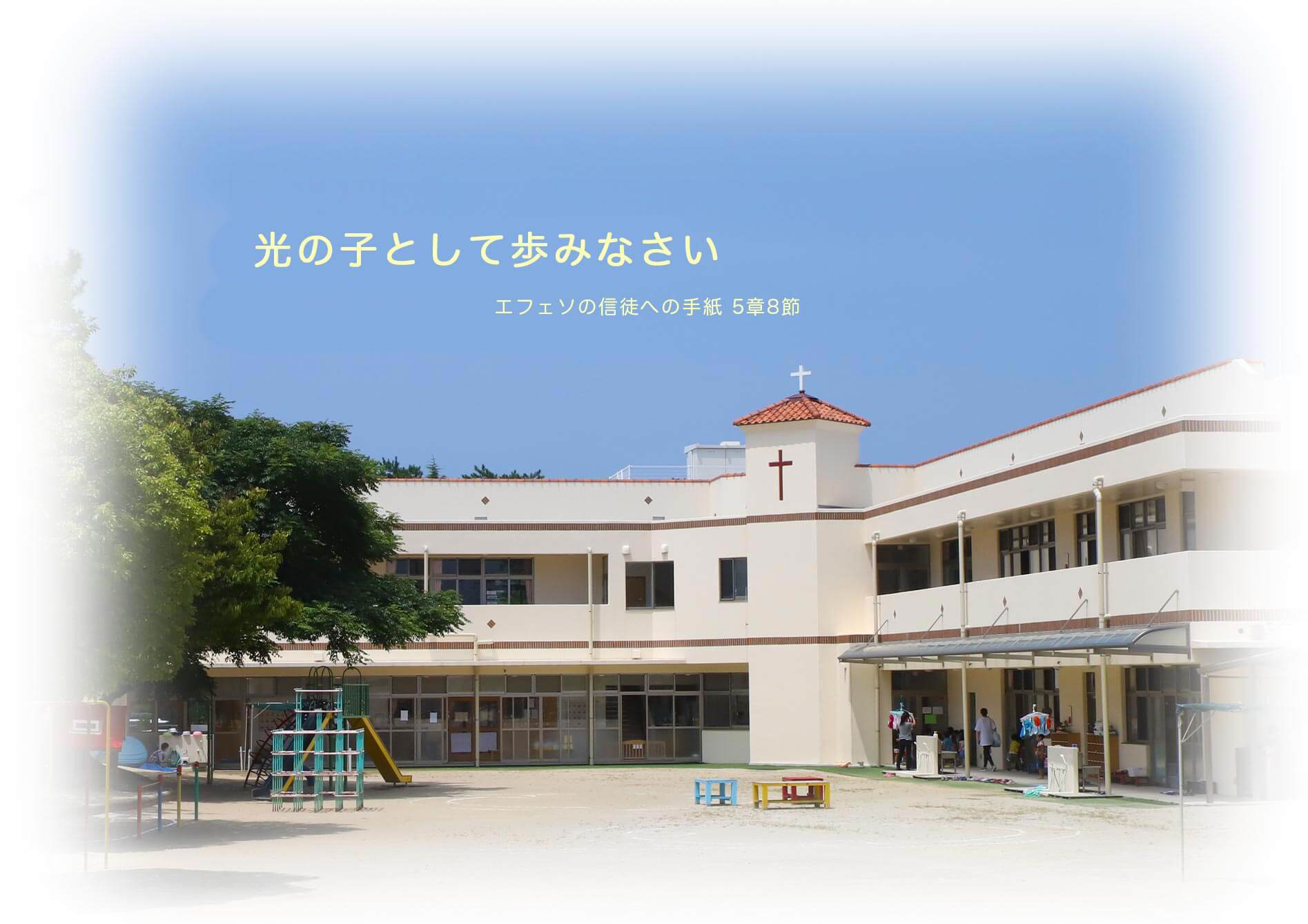 1947年、美しい松林に隣接する広大な土地に聖愛幼稚園は旧宗像郡(福津市・宗像市)第一号の幼稚園として津屋崎教会によって付属幼稚園として建てられました。